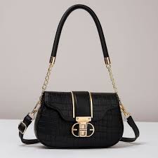 The versatile strap features a stylish juxtaposition of smooth faux leather and a chunky, high-shine gold-tone chain detail, allowing it to be comfortably worn as a shoulder bag or a crossbody bag (depending on the strap length). The structured silhouette ensures the bag maintains its elegant shape, making it suitable for both casual daytime wear and dressier evening events