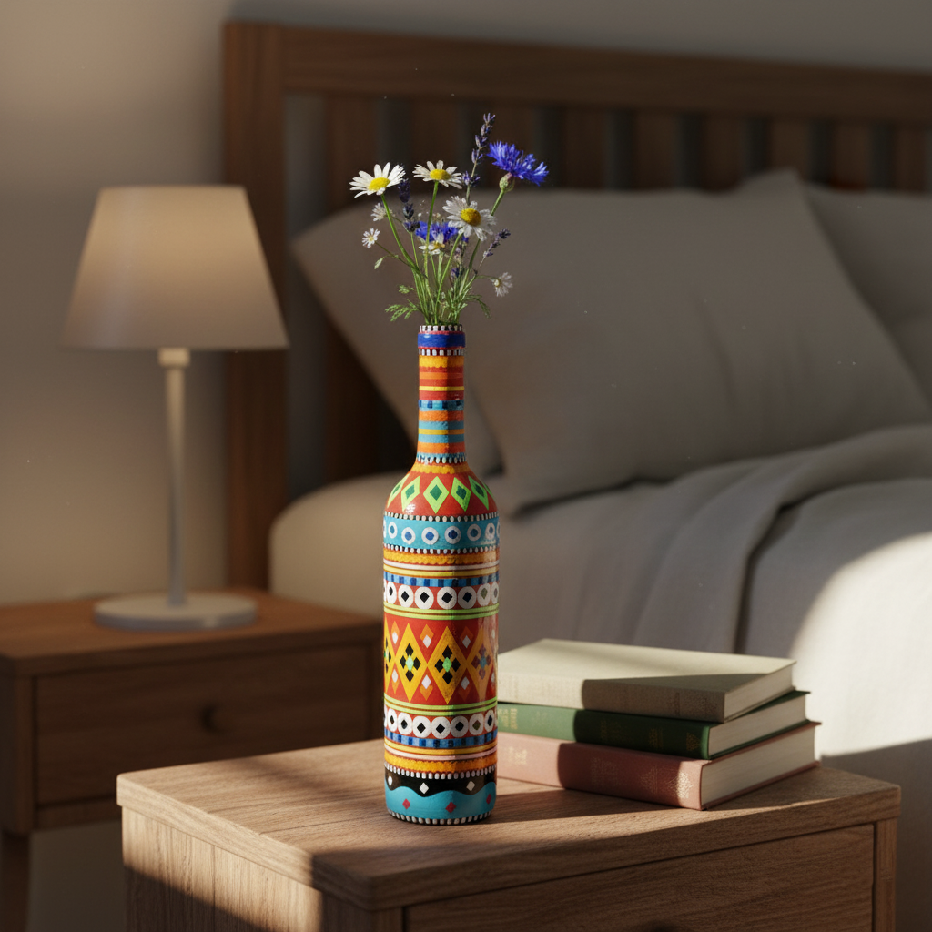 Traditional Truck Art Decorative Glass Bottle Vase – Handcrafted Multicolor Home Decor (750ml)
